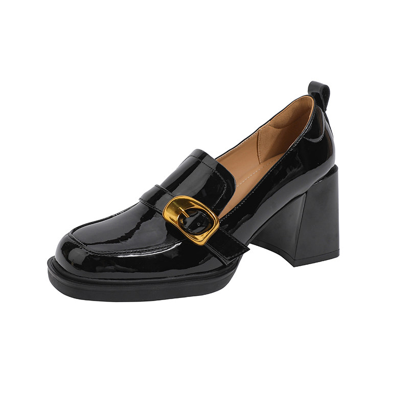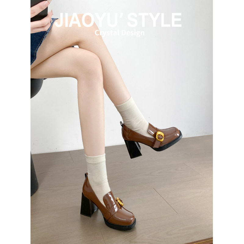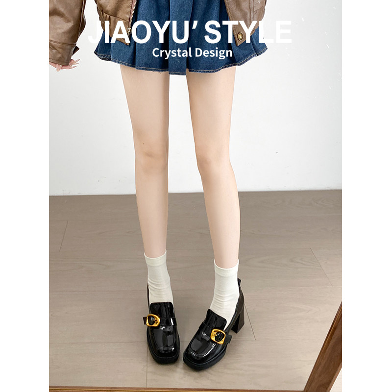 真皮~骄屿复古英伦风高跟小皮鞋粗跟乐福鞋春秋方头一脚蹬玛丽珍