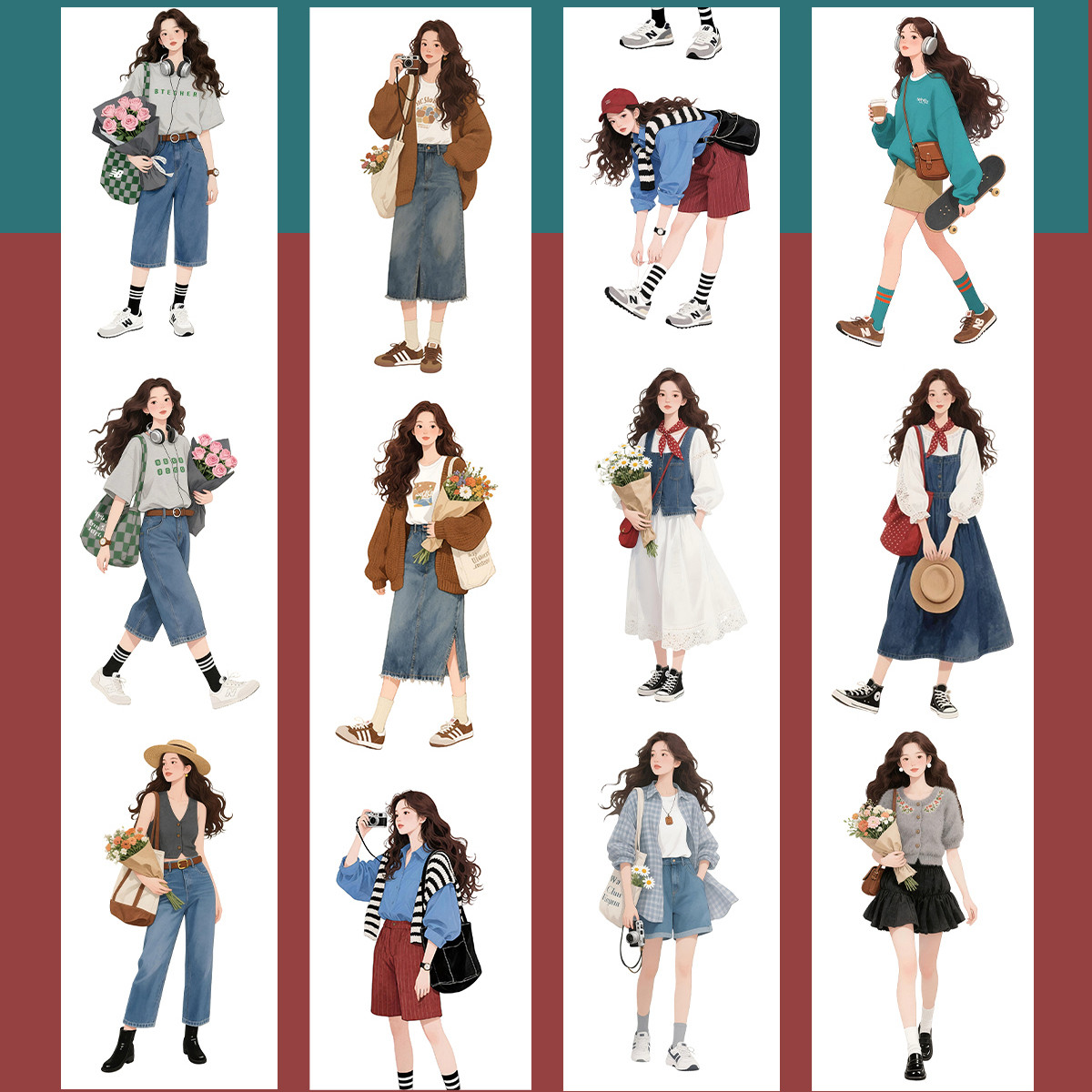 东西社文创〖致青春〗新品现货PET 人物女孩手帐胶带 夏秋冬穿搭