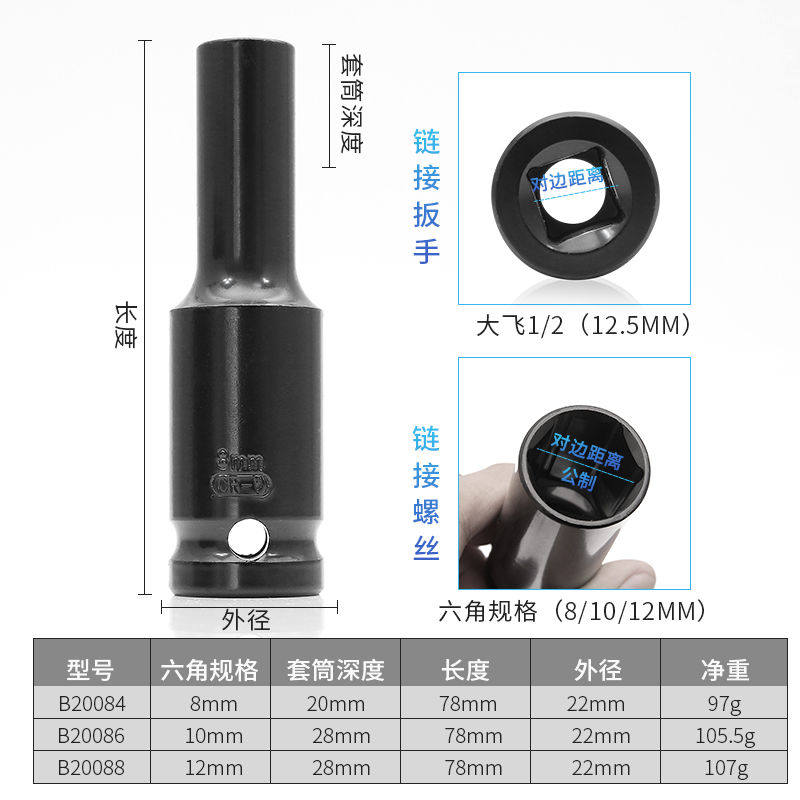 保联超薄锂电套筒扳手专用加长薄壁加硬风炮摩托电动车维修套头