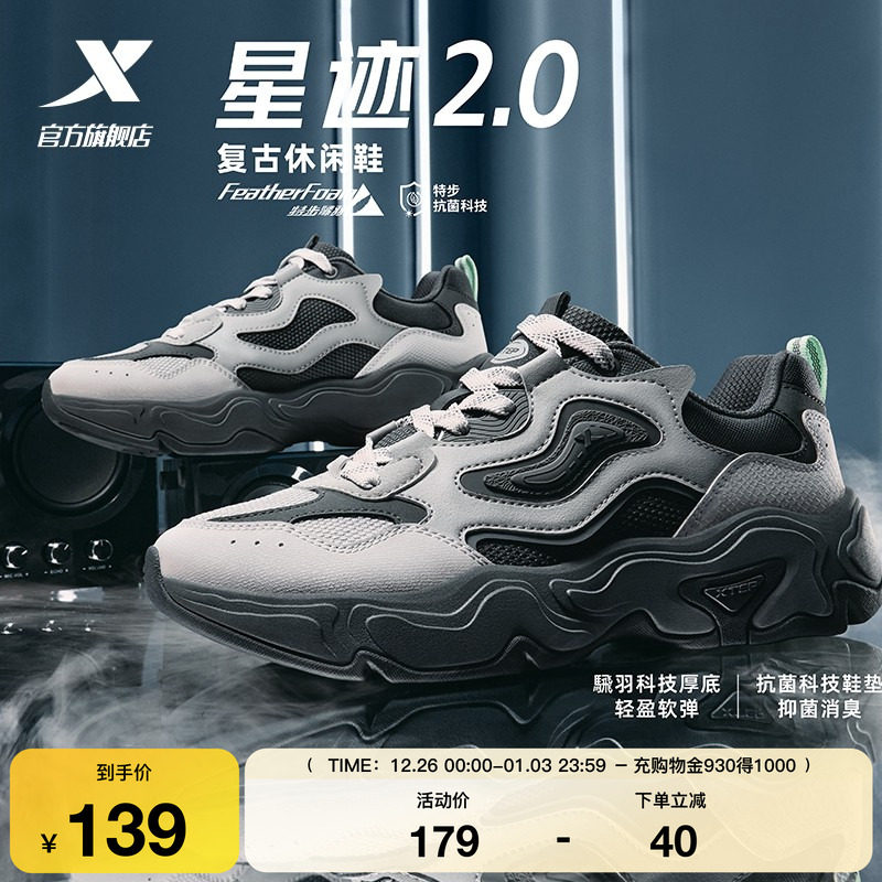 特步星迹2.0休闲鞋男鞋冬季革网正品轻便百搭老爹鞋运动鞋子女鞋
