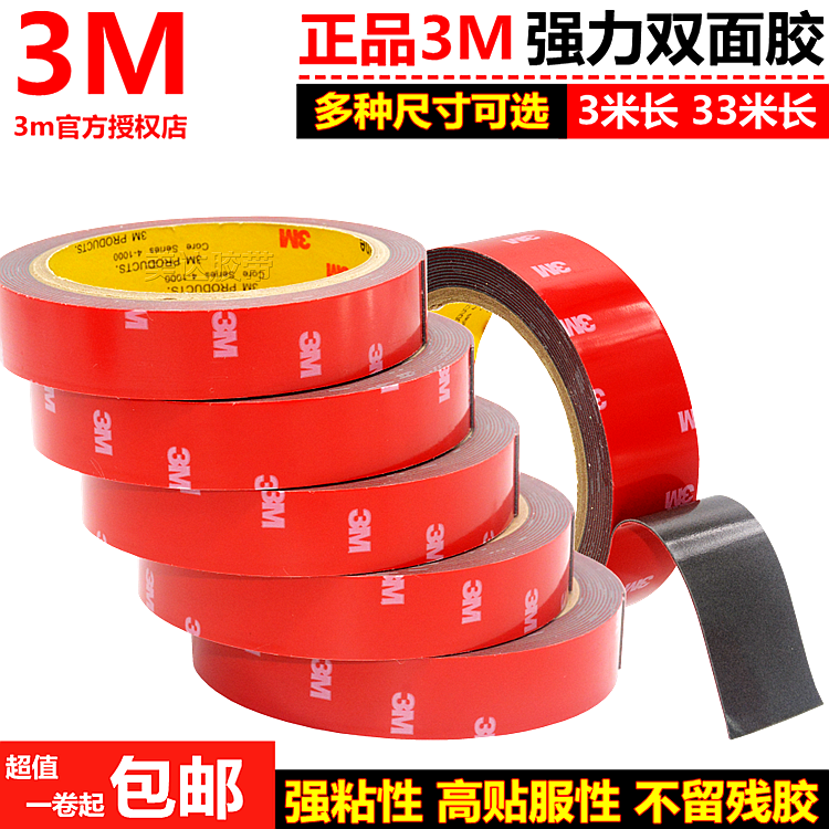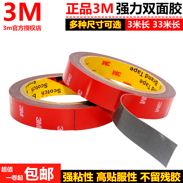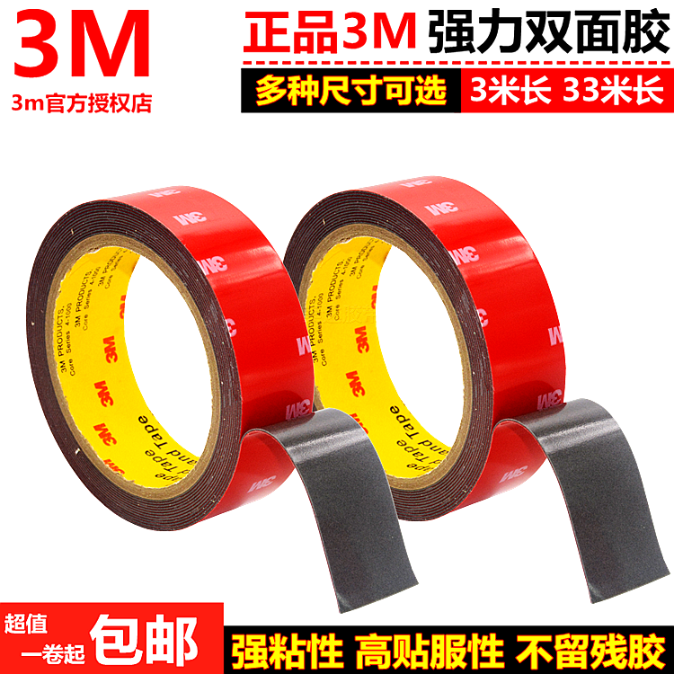 正品3M双面胶超强力无痕泡沫海绵防水耐温车用胶带防撞条车标饰条