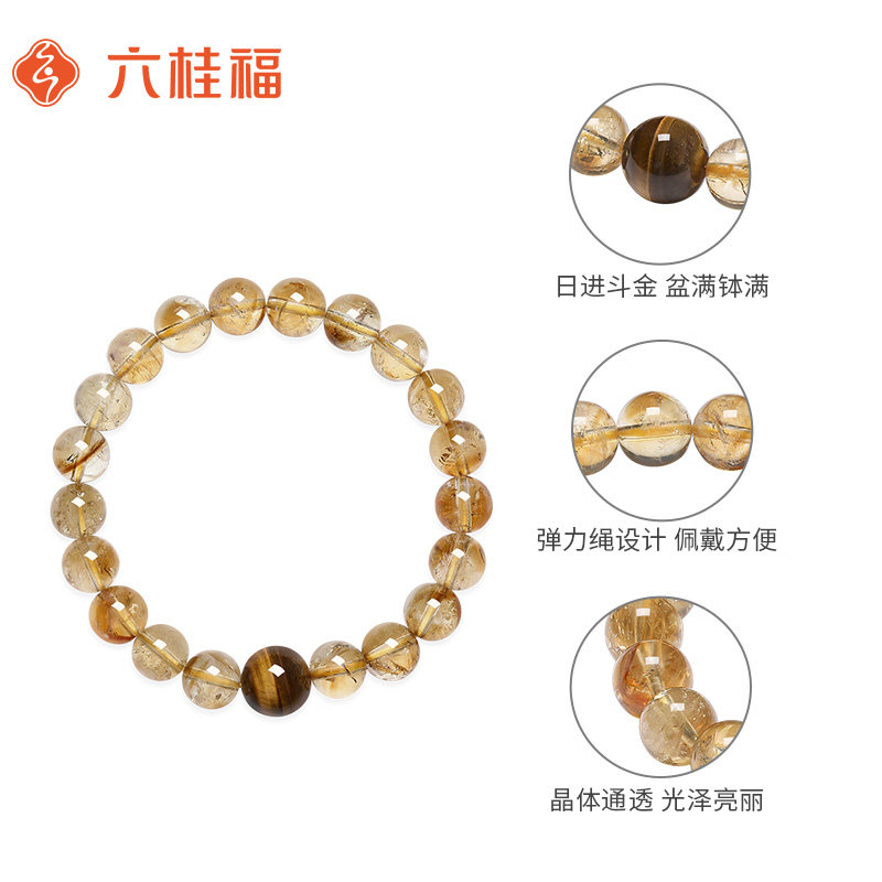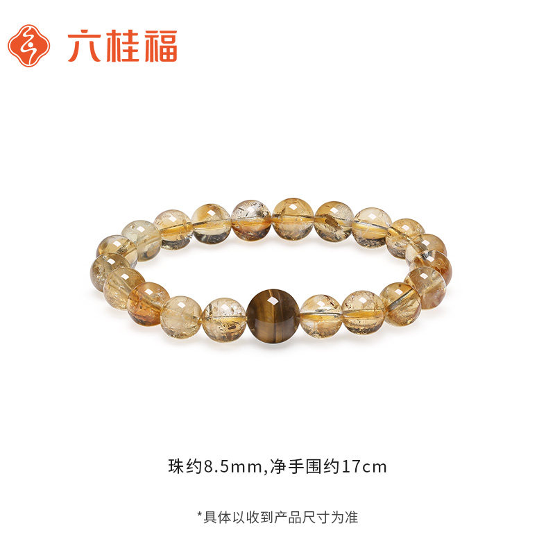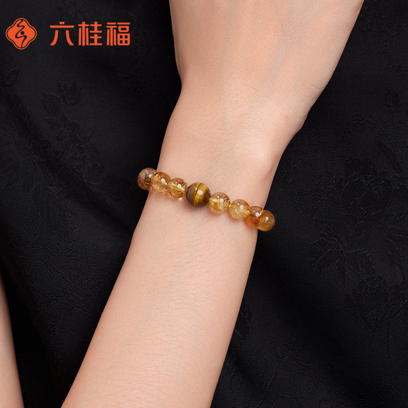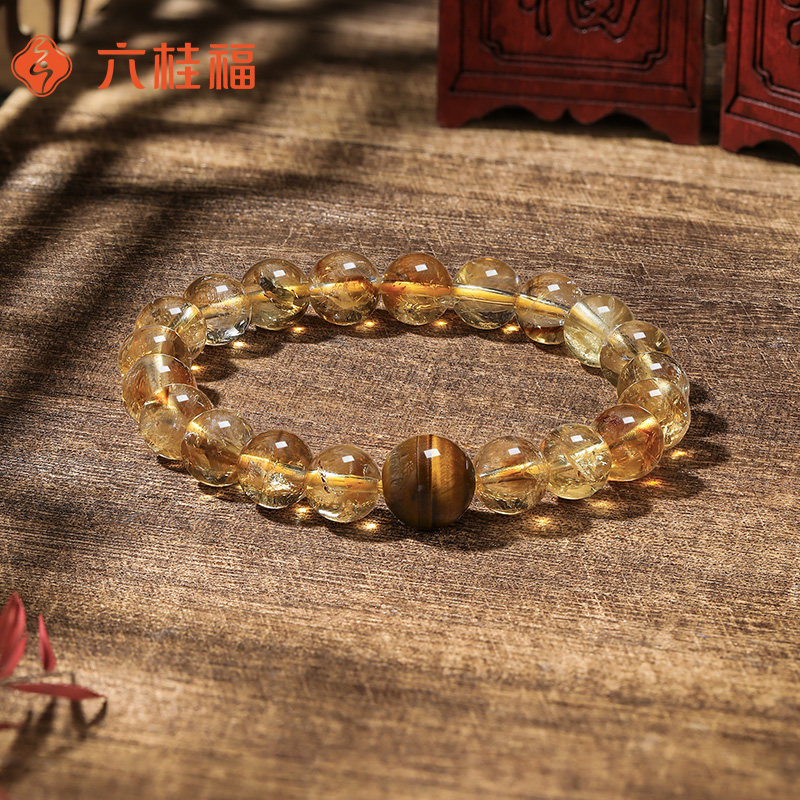 六桂福珠宝虎眼石转运珠男天然黄水晶饰品招财手串圣诞礼物送女友