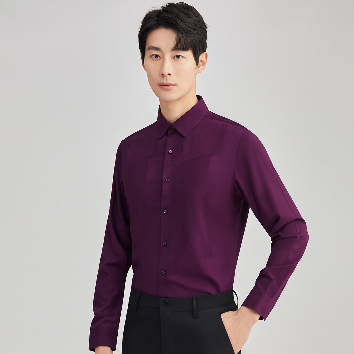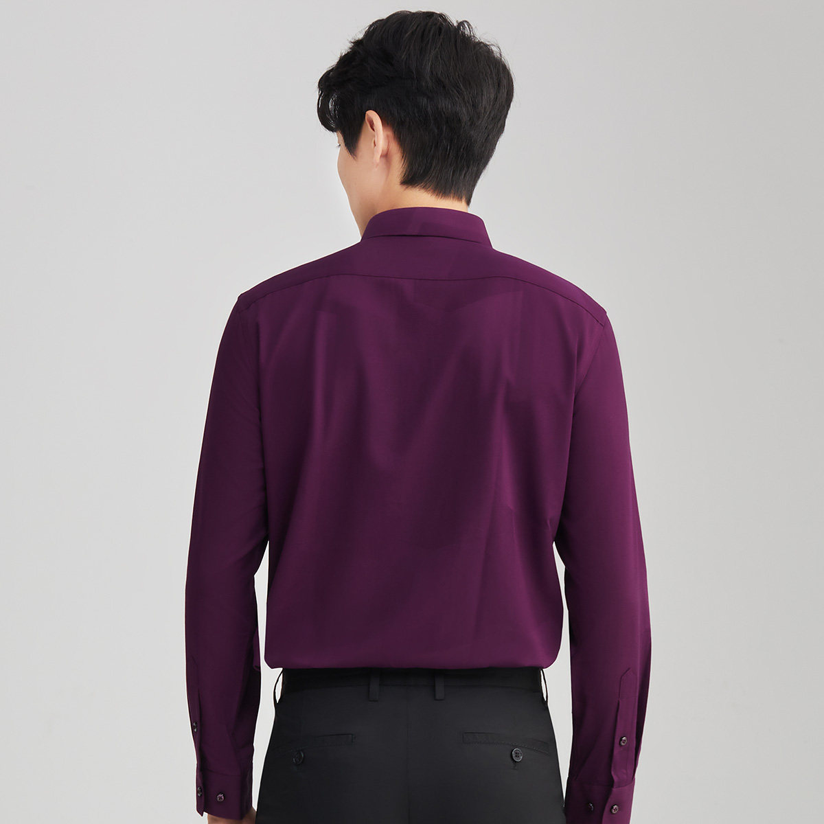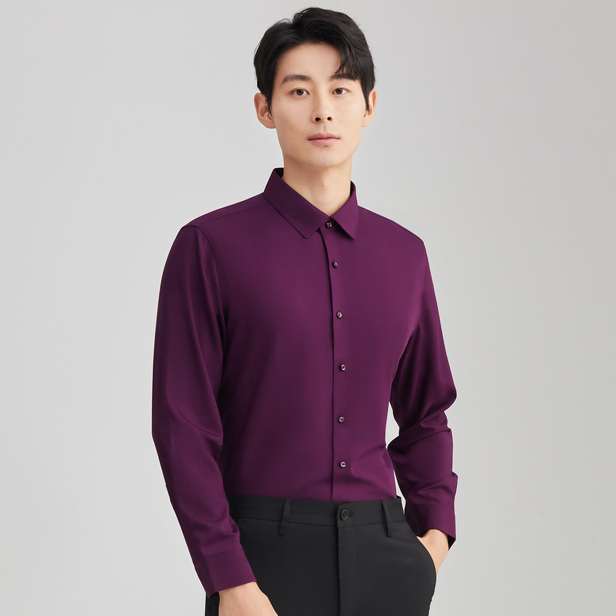 圣得西男士弹力商务休闲衬衫2025年冬季款时尚纯色韩版长袖衬衣