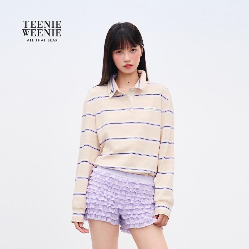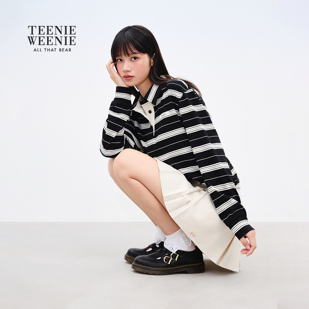 TEENIEWEENIE bearnova2025年秋季新款女装气质学院POLO领条纹T恤