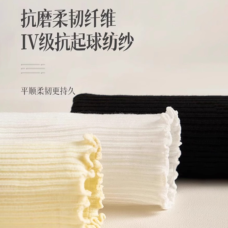 防臭袜子女木耳边堆堆袜春秋款黑色中筒袜纯色搭配小皮鞋长袜诸暨