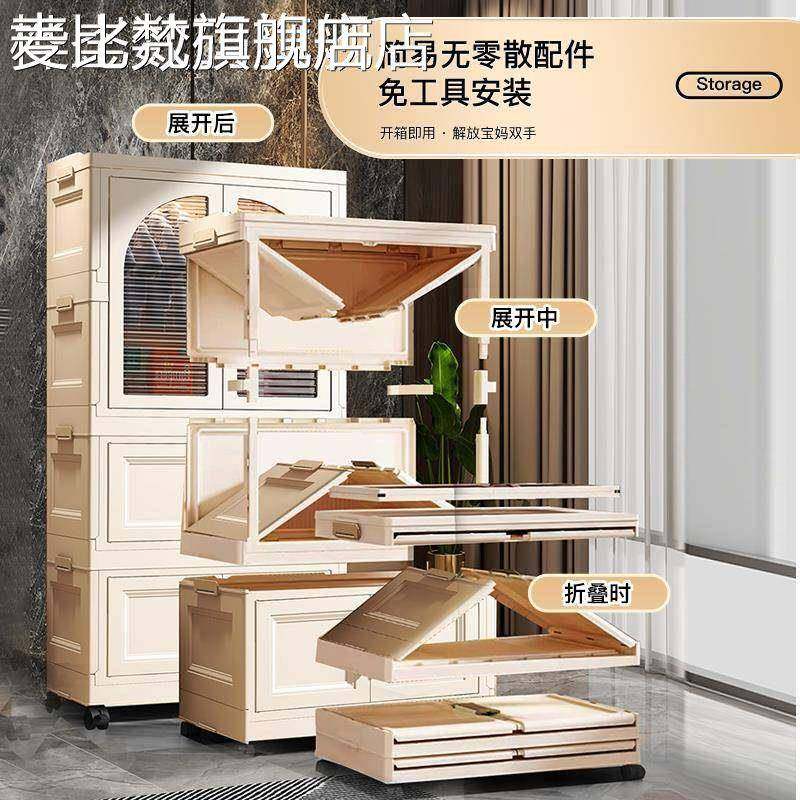 麦比梵65CM宽免安装折叠收纳柜儿童衣柜宝宝小衣橱卧室家用储物置物柜子摆件垫垫床笠拉车