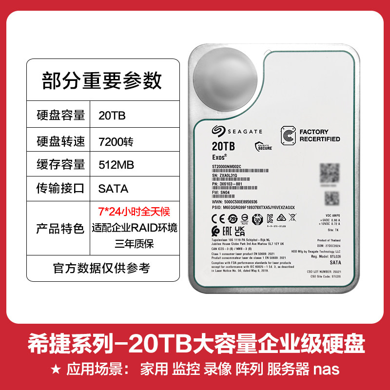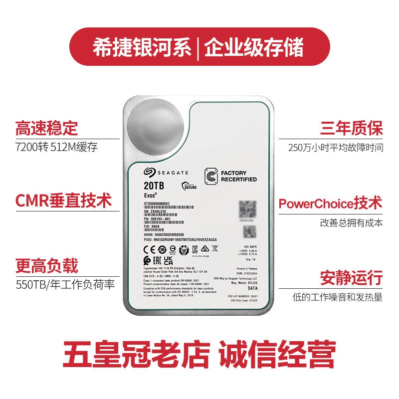 正品希捷ST20000NM002C银河企业级氦气机械硬盘NAS服务器存储20TB