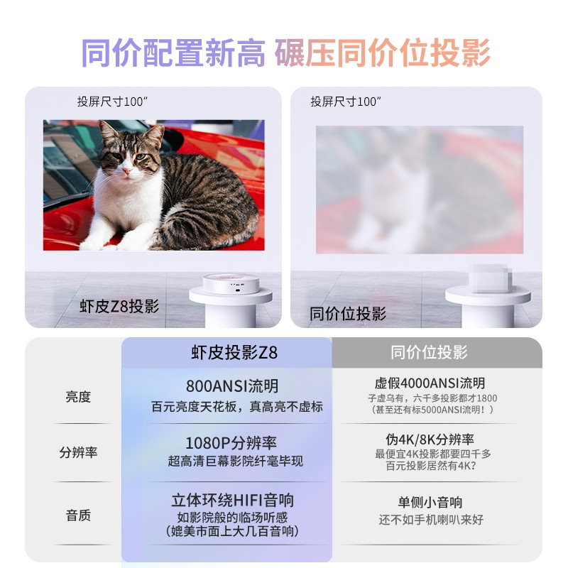 虾皮Z8智能投影仪家用高清投墙投影仪小型便携式移动家庭影院手机WiFi无线投屏投影机【231】