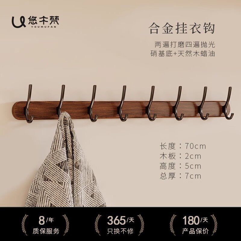 中古实木挂衣架墙上壁挂创意入户门口挂衣钩玄关高级复古装饰挂钩