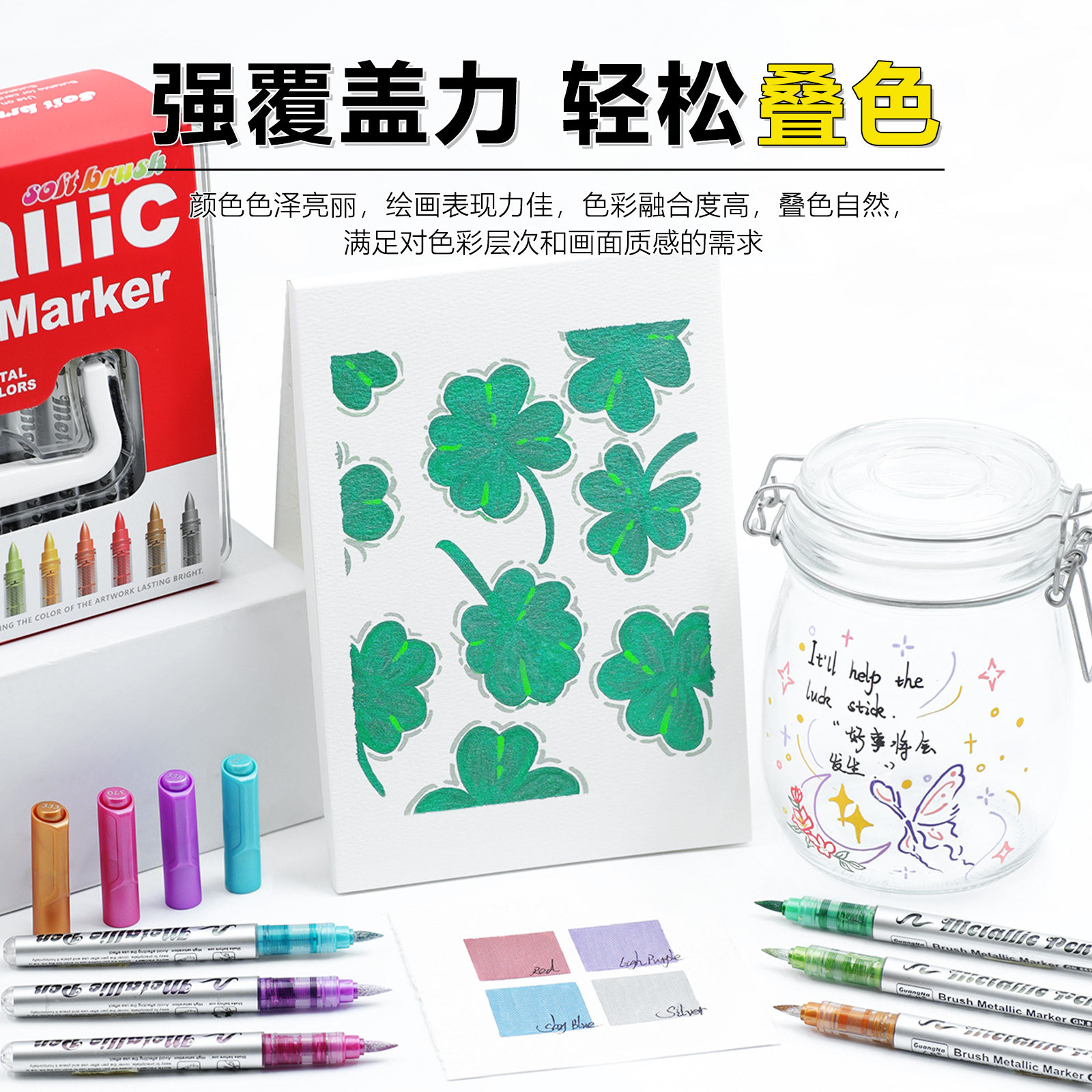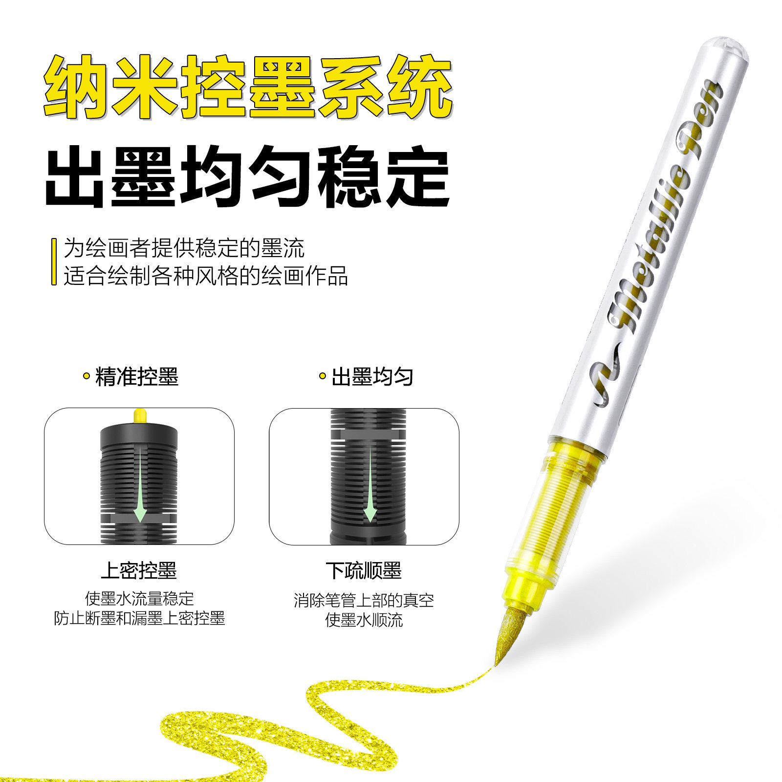 广纳直液式金属色马克笔软头丙烯高达模型涂装上色笔水性油漆笔金色银色签名笔金属笔彩色高光笔闪光秀丽笔