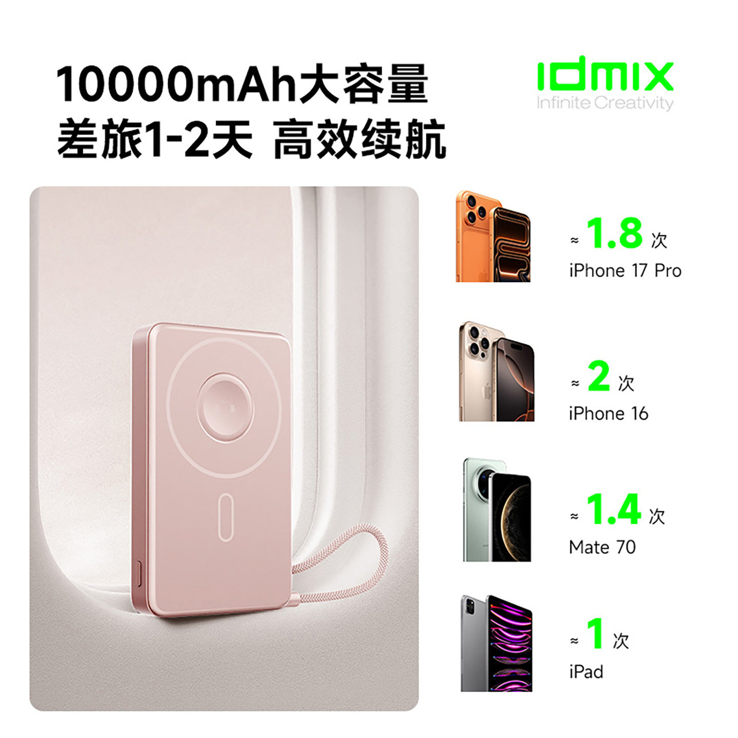 【国家3C认证】idmix自带线磁吸充电宝45W快充适用iPhone17苹果16可携登机Apple watch手表MacBook移动电源