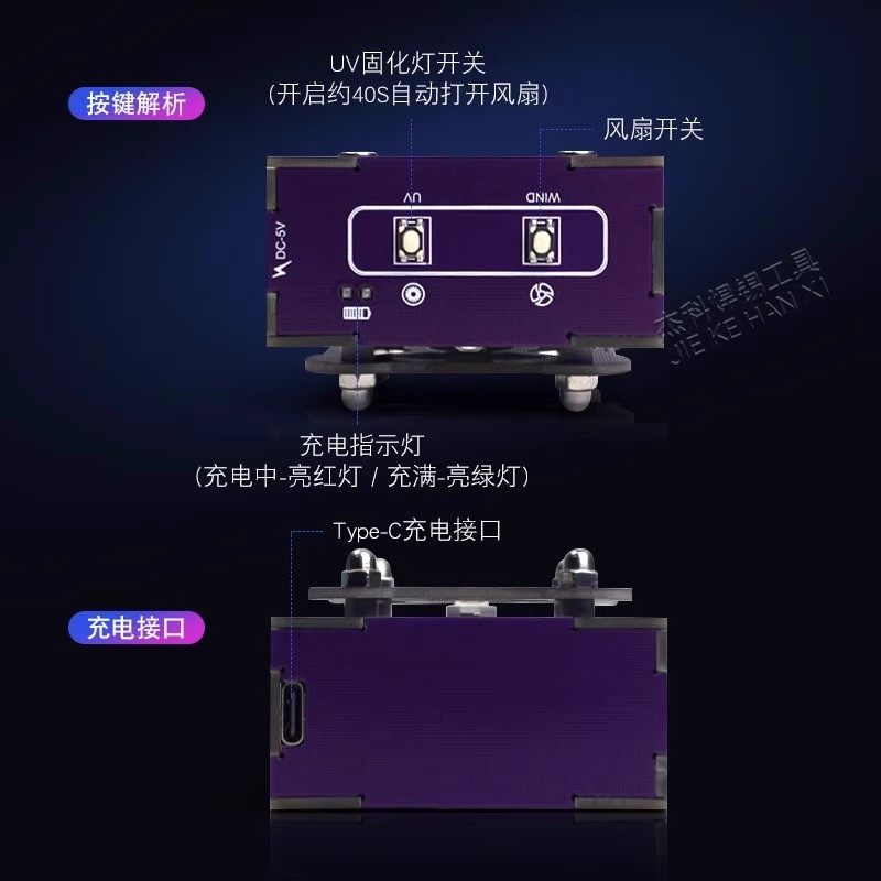 紫外线UV固化灯无线手机维修2合1快速散热排烟固化风扇速干油绿油固化散热小风扇uv胶固化灯固化扇绿油固化