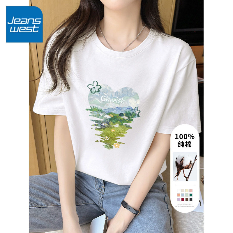 KV真维斯白色短袖t恤女2025新款 休闲风纯棉别致圆领独特上衣女夏