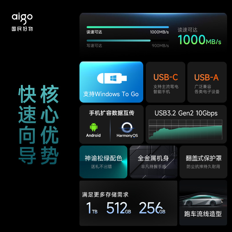 爱国者固态u盘2t大容量高速TypeC双接口手机电脑两用移动优盘正品