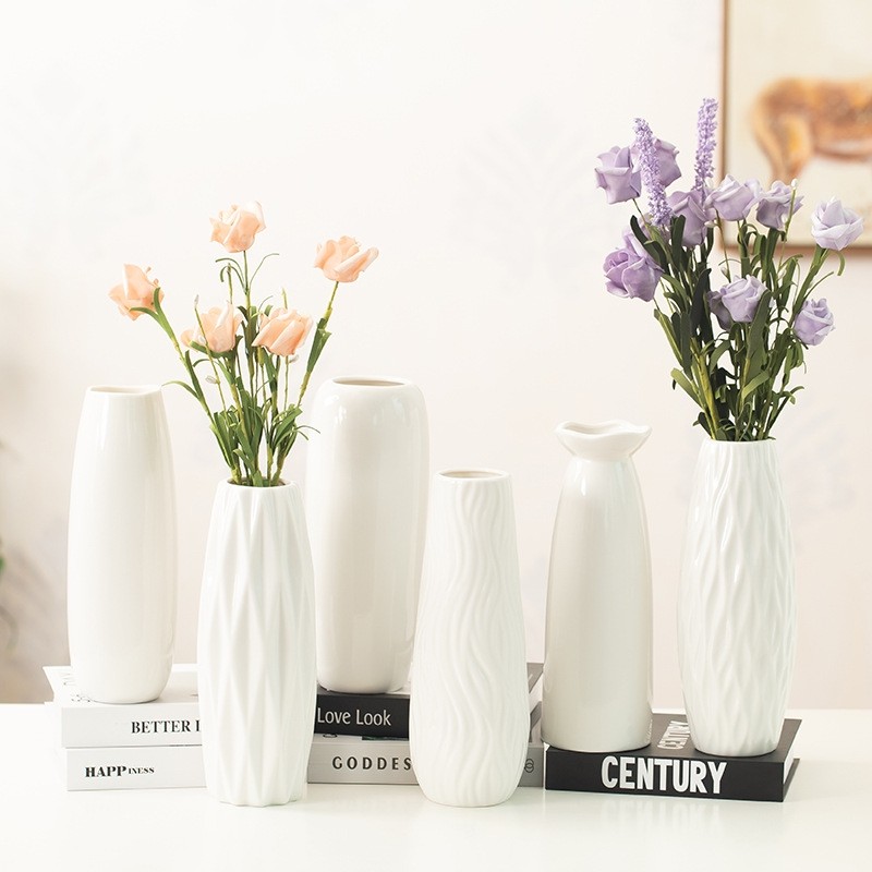 中式白色亮面陶瓷花瓶水培高级感家居客厅餐桌干花插花装饰品摆件