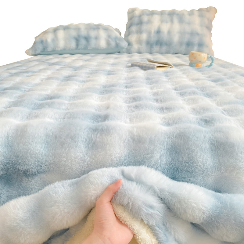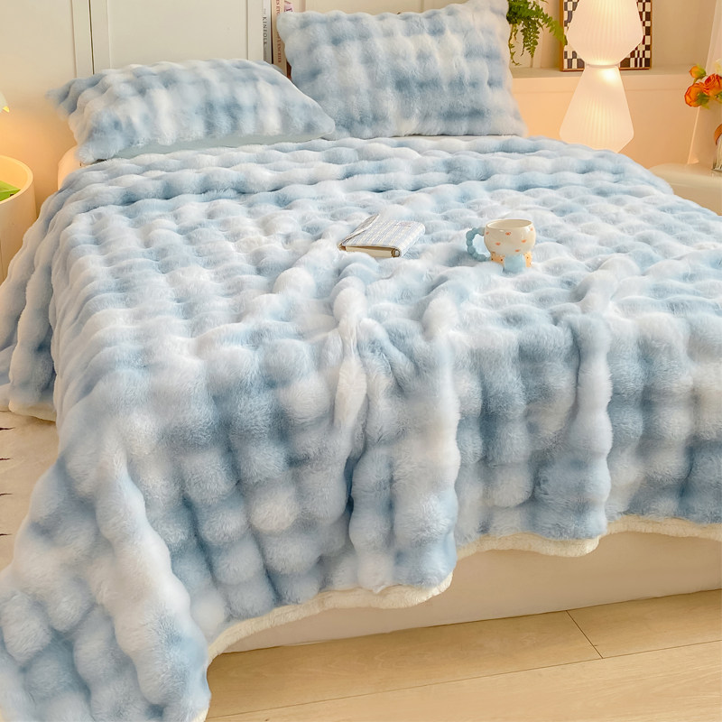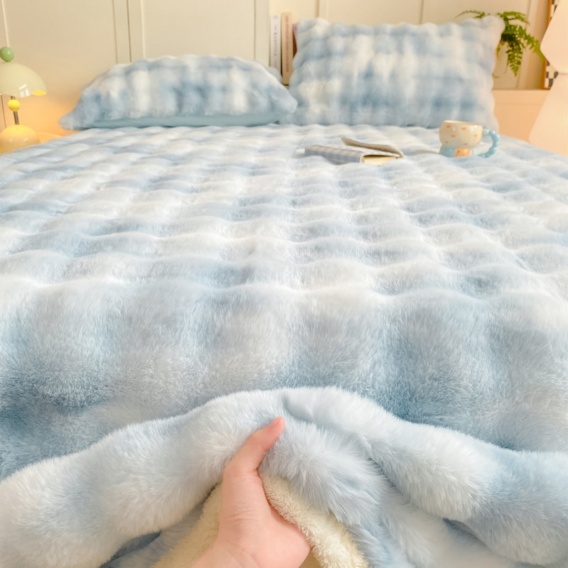 高级感兔兔毛绒床单单件冬季加绒毛毯牛奶绒枕套三件套加厚珊瑚绒