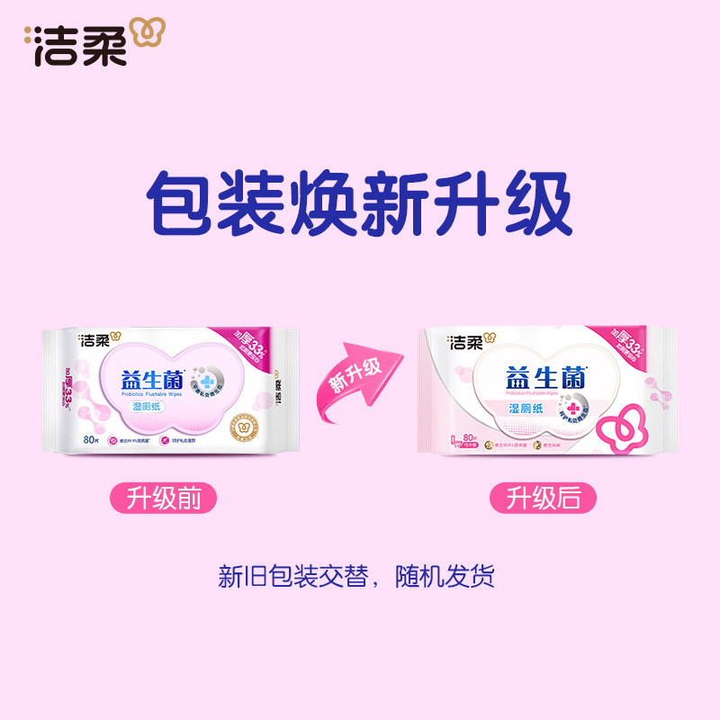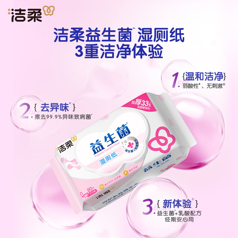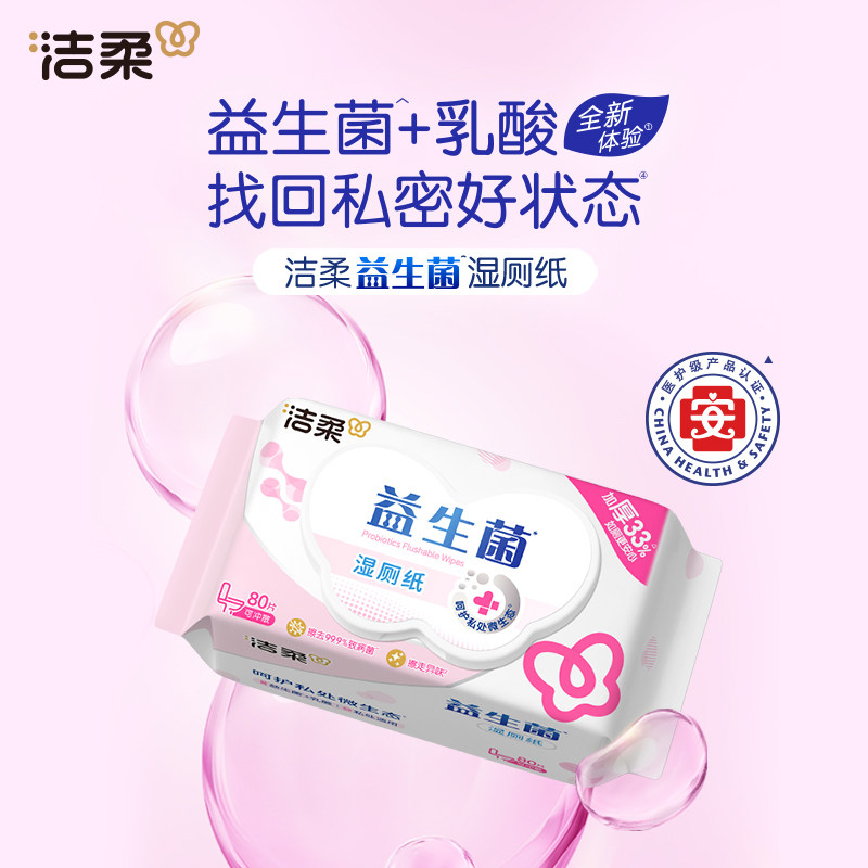 洁柔益生菌卫生湿纸巾80片温和不刺激洁净私处湿厕纸可冲马桶