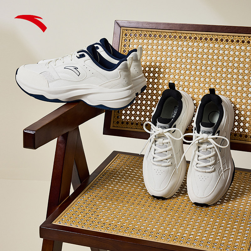 鸿星尔克男鞋运动鞋桀骜皮面秋冬款休闲鞋青少年软底老爹鞋跑步鞋