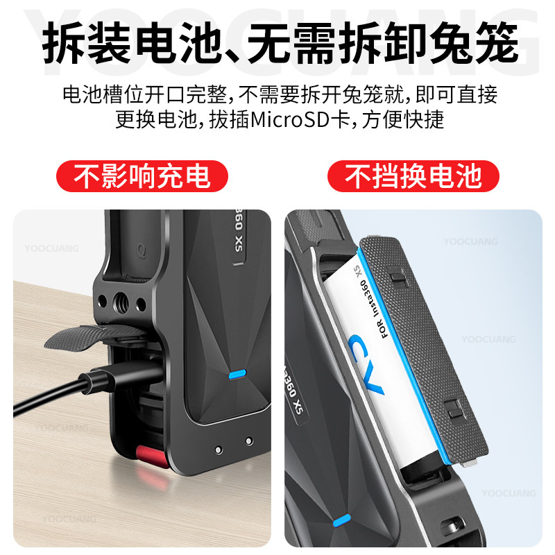 【顺丰包邮】【双磁吸】优创谷适用影石insta360 X5兔笼磁吸金属铝合金拓展边框全景相机保护套壳防摔壳配件