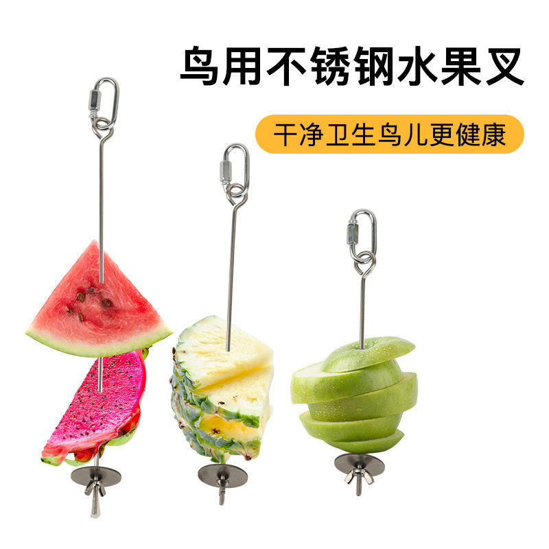 鹦鹉不锈钢水果叉鸟用蔬菜玉米零食挂钩水果夹喂食器玩具鸟笼配件
