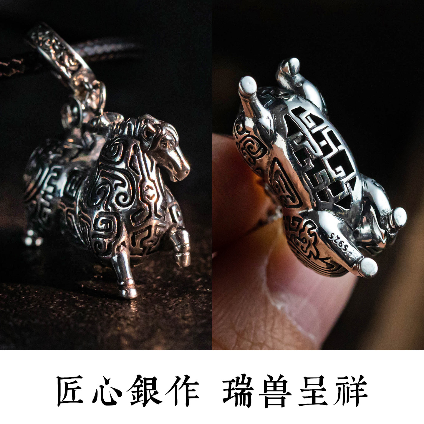 大善堂纯银生肖马年吊坠马上有钱项链本命年男女毛衣链精致礼物