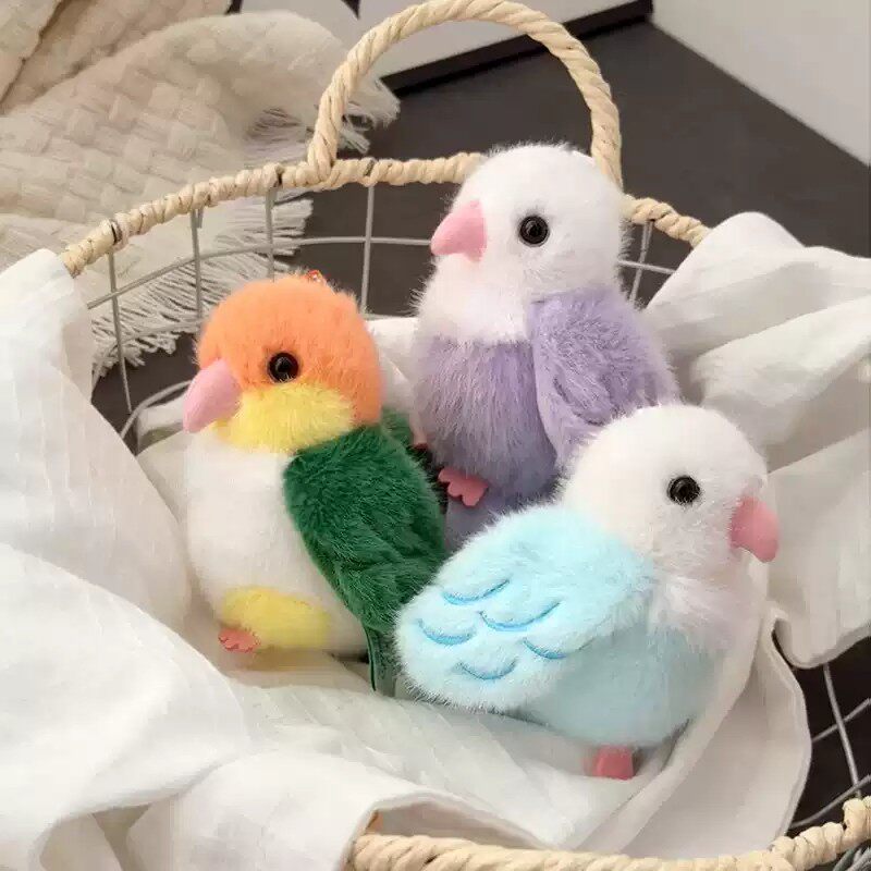 仿真小鸟生日礼物钥匙扣毛绒鹦鹉玩偶牡丹公仔挂件书包挂饰车钥匙