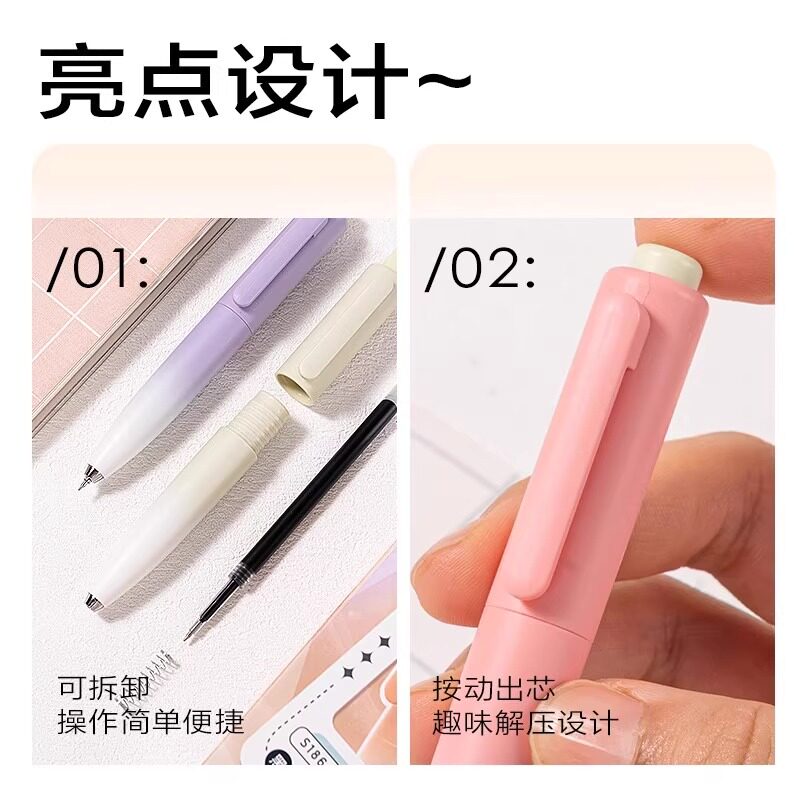 晴耕雨读刷题笔专用高颜值速干按动中性笔ins黑笔圆珠笔ST笔学生用考试笔顺滑0.5笔芯黑色水性签字笔水笔碳素