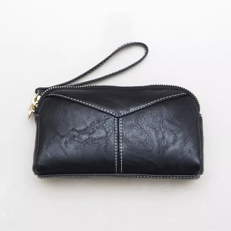 外贸出口尾货女士迷你拉链钱包真皮头层牛皮清仓手拿手抓女包卡包