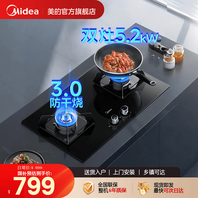 政府补贴美的燃气灶防干烧家用煤气灶天然气灶台液化气灶具炉官方