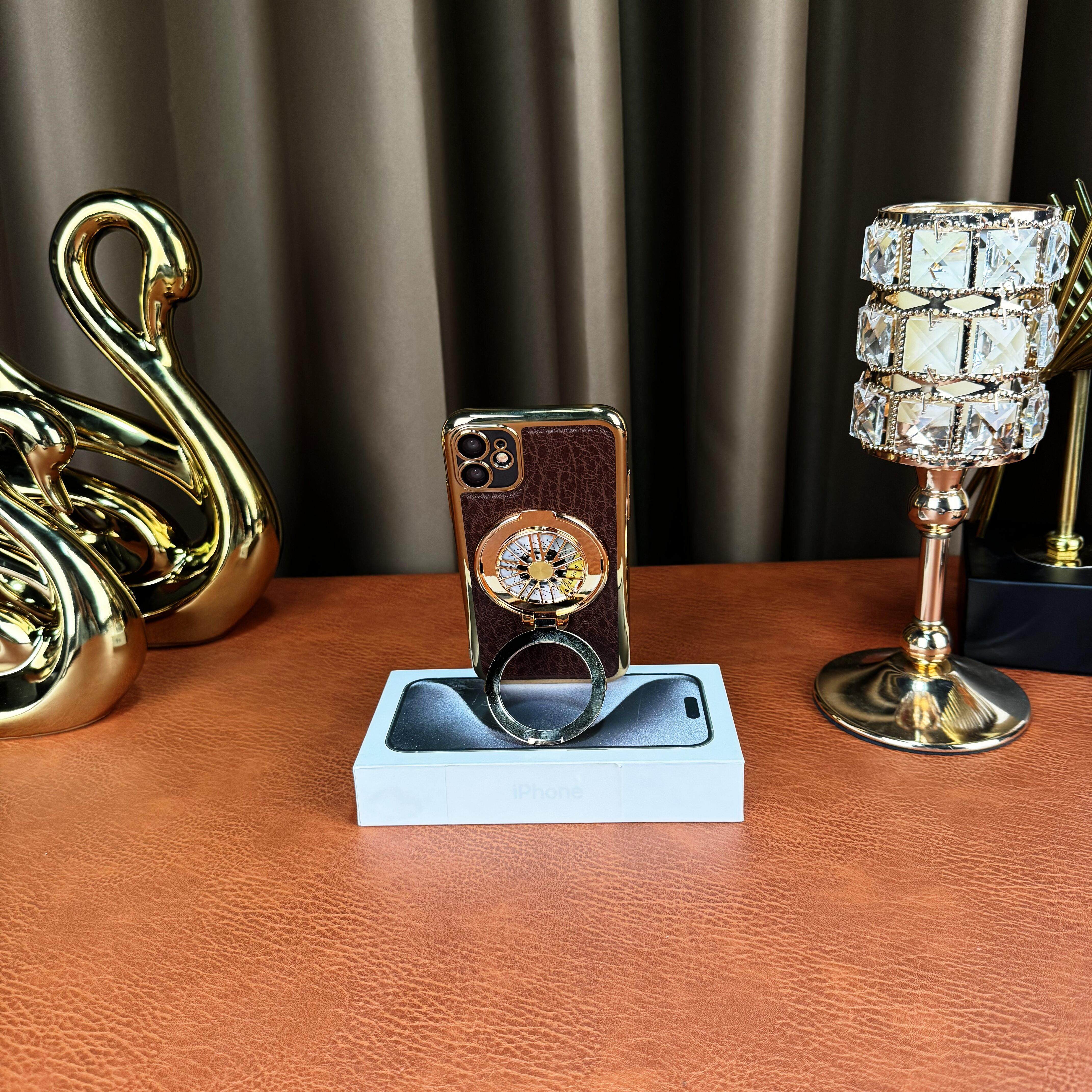 适用苹果11手机壳新款高端iphone16promax树纹皮套旋转陀螺支架15Pro轻薄全包防摔14plus商务13/12男款保护套