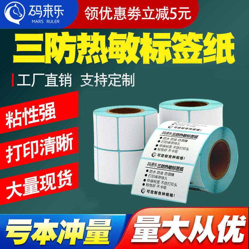 三防热敏标签纸不干胶热敏纸打印纸贴纸电子秤纸称条码40*30 50 60 70 80 90 100x150电子面单快递E邮宝防水