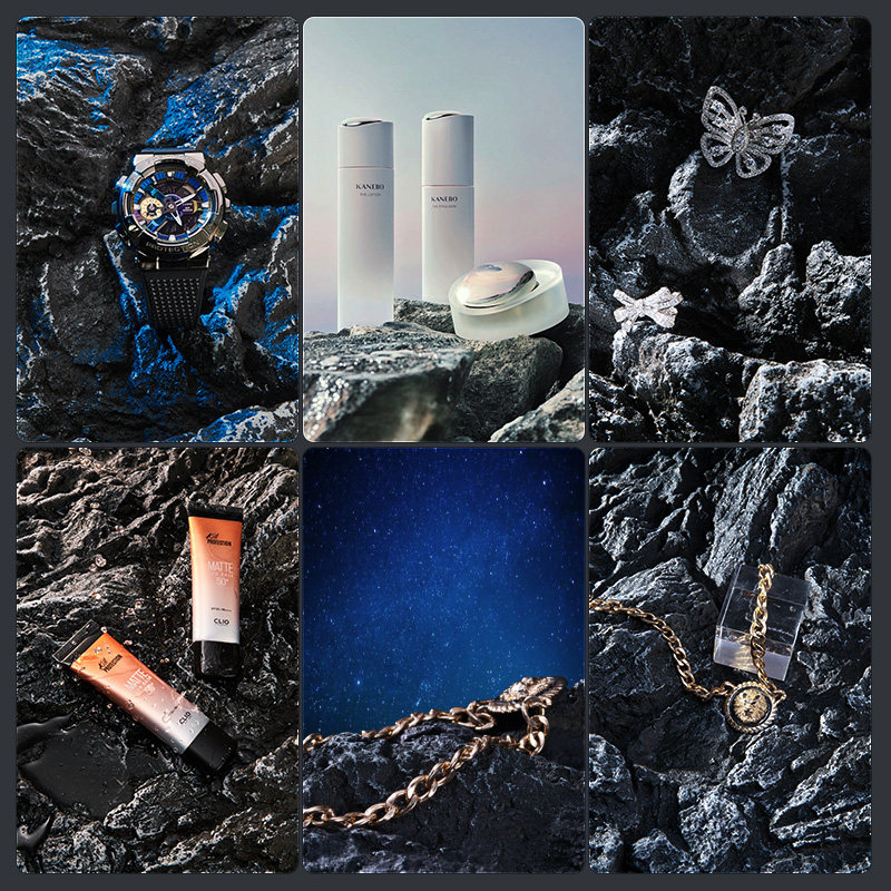仿岩石纹理拍摄背景板道具黑色产品美食饰品静物电商拍照摄影创意立体鱼缸造景装饰布景商业产品创意