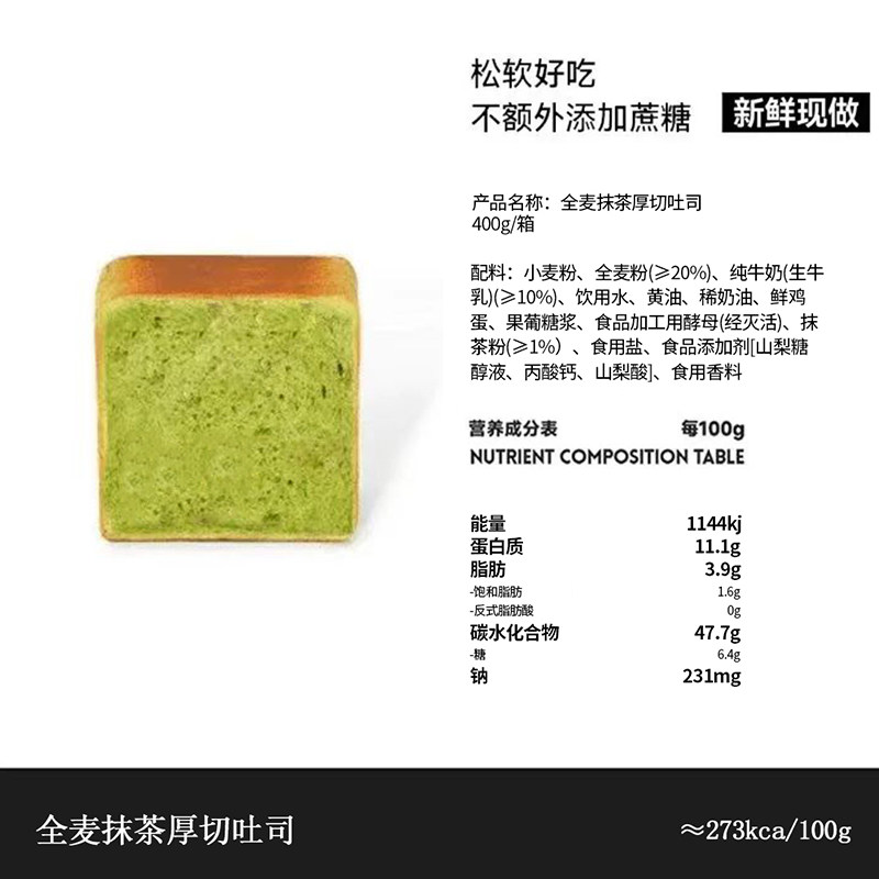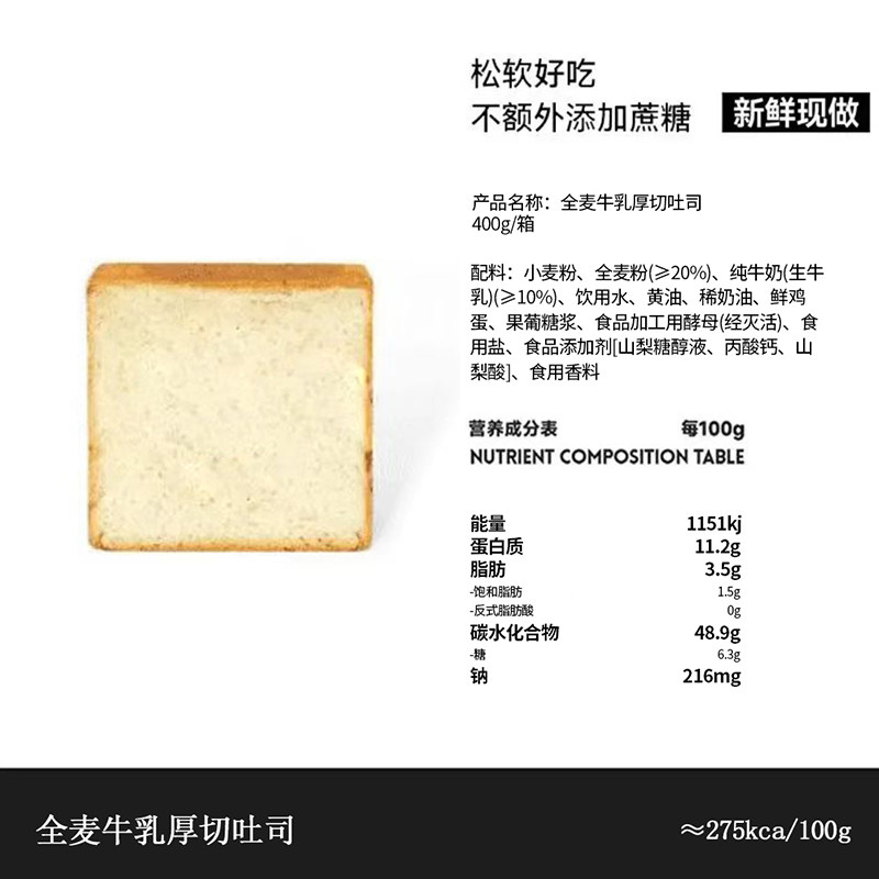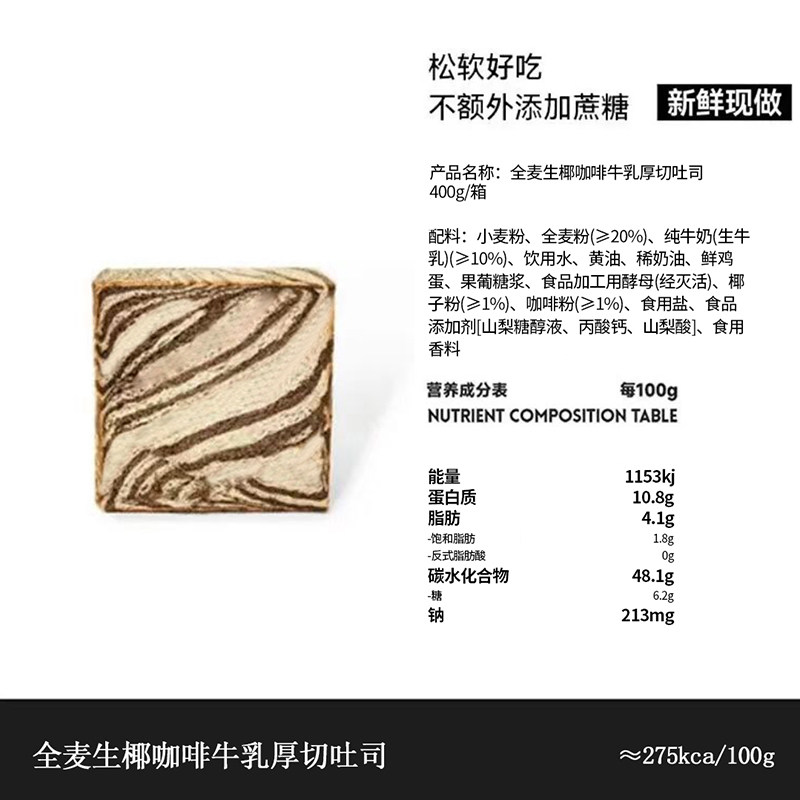 【短保400g一箱】全麦牛乳厚切面包高端全麦早餐抹茶咖啡切片吐司