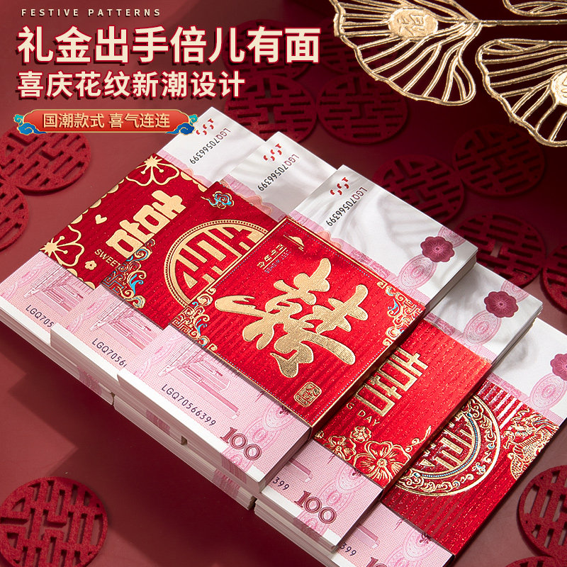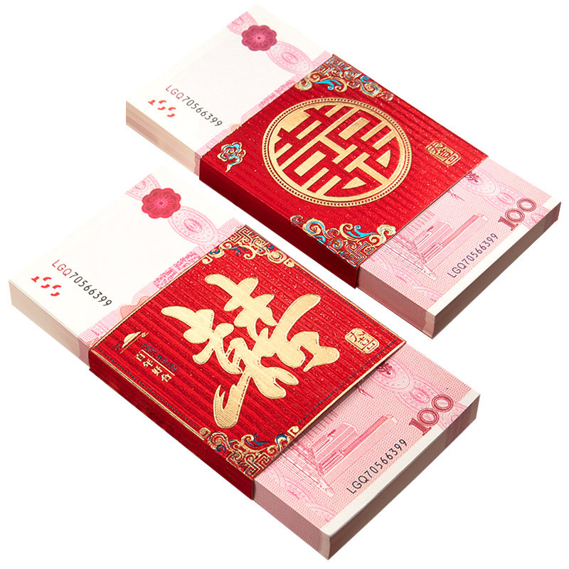 思进订婚彩礼假钱练功券婚礼道具100元人民币点钞券高仿婚庆用品摆件道具钞票十万现金道具钱封喜字钱套礼金