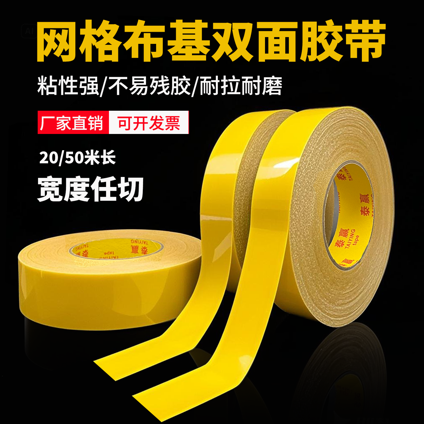 强力布基网格双面胶高粘度婚庆地毯地板革地垫固定无痕防水布胶带