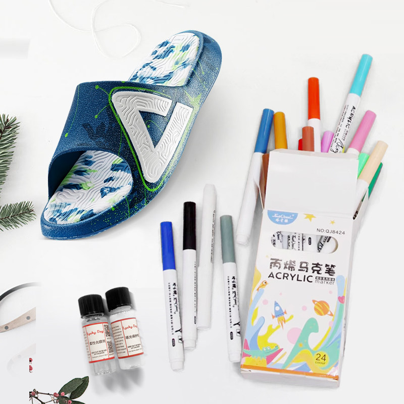 球鞋匹克太极拖鞋手绘涂鸦手绘改色丙烯mark笔马克笔颜料不掉色