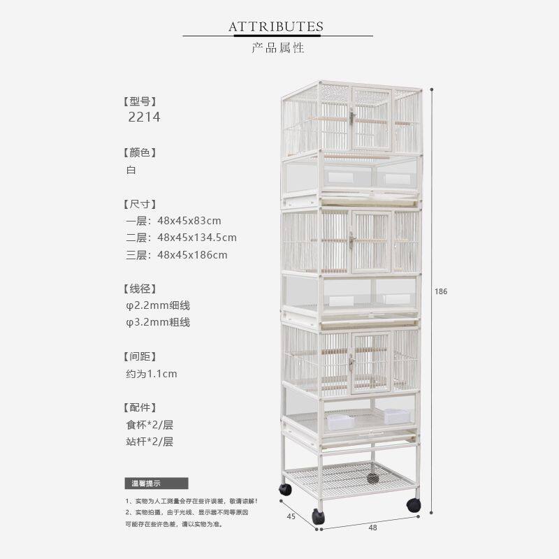 粤迪三层鸟笼鹦鹉笼子牡丹别墅虎皮玄凤空间特大多层群养鸟笼2214