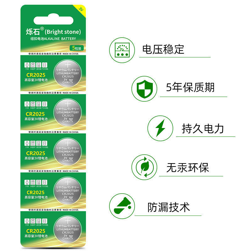 烁石电池CR2025纽扣电池3V机顶盒适用于手表奔驰大众福特高尔夫马自达轩逸电子汽车钥匙遥控器锂电池