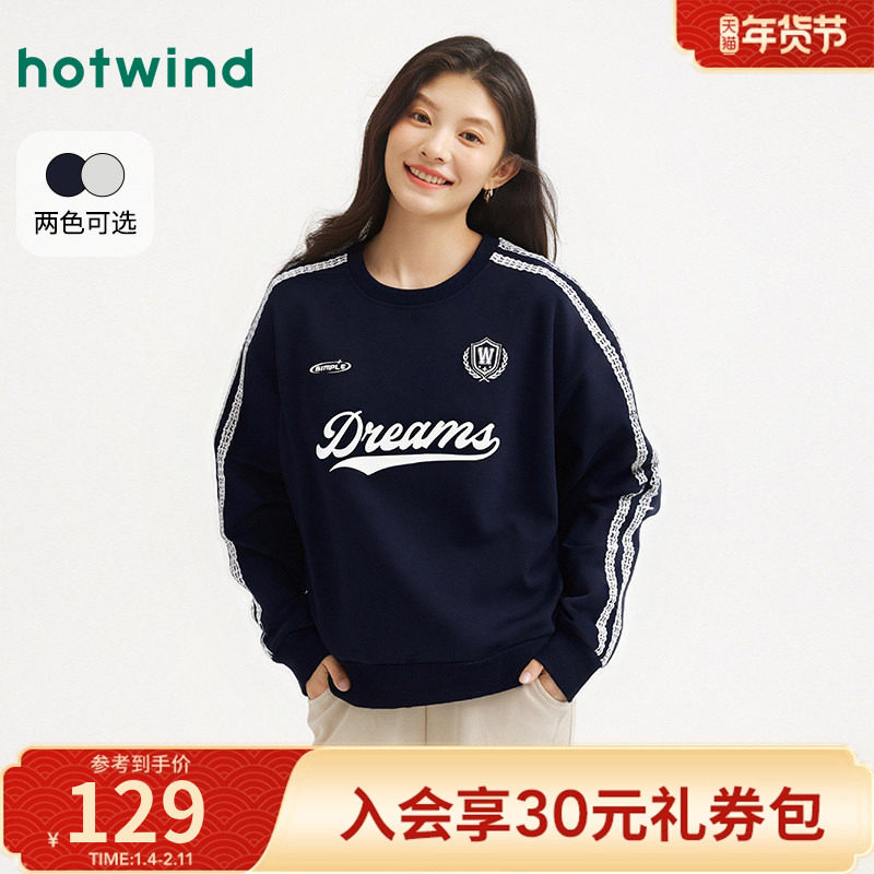 热风2026年春季新款女士运动风圆领卫衣