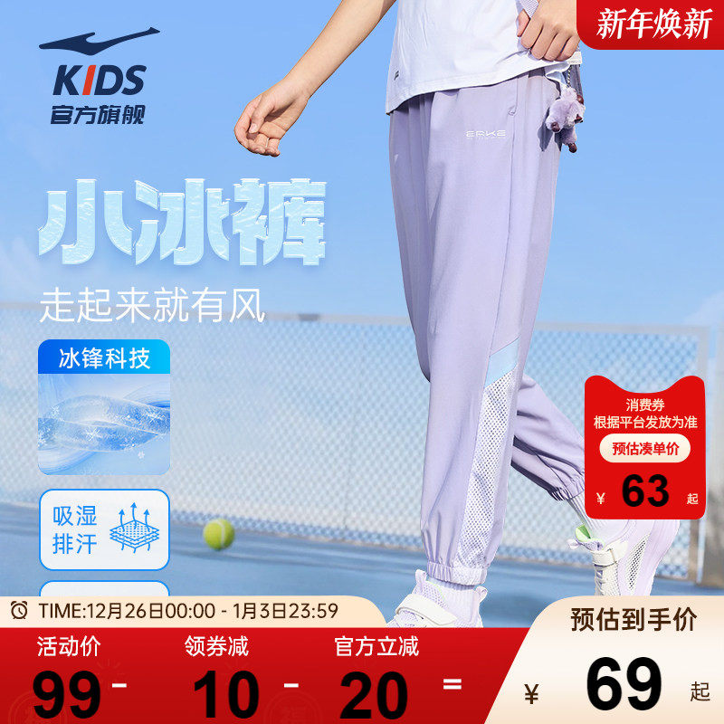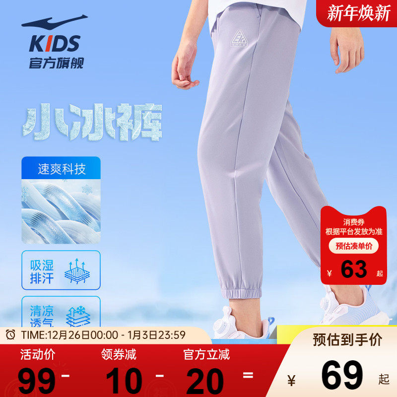 鸿星尔克童装儿童运动裤速干女童薄款防蚊裤子夏季透气休闲裤长裤