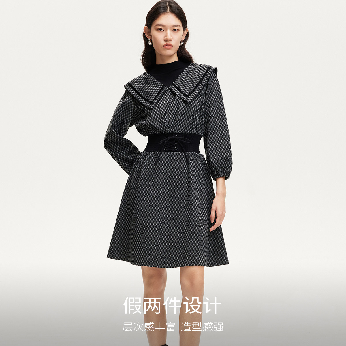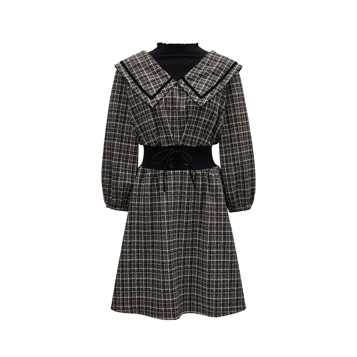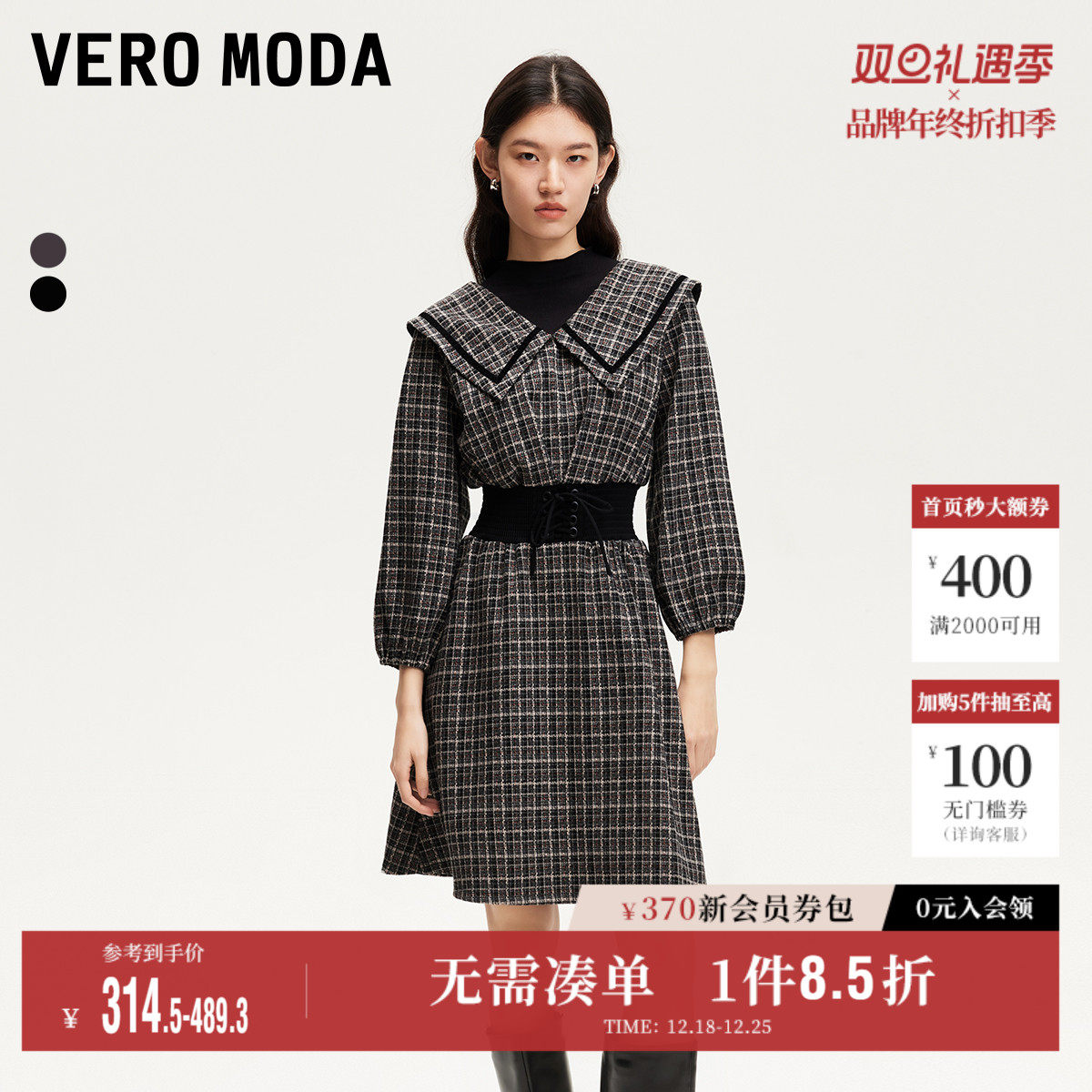 Vero Moda奥莱连衣裙2025秋季新商场同款格纹腰封系带中裙复古