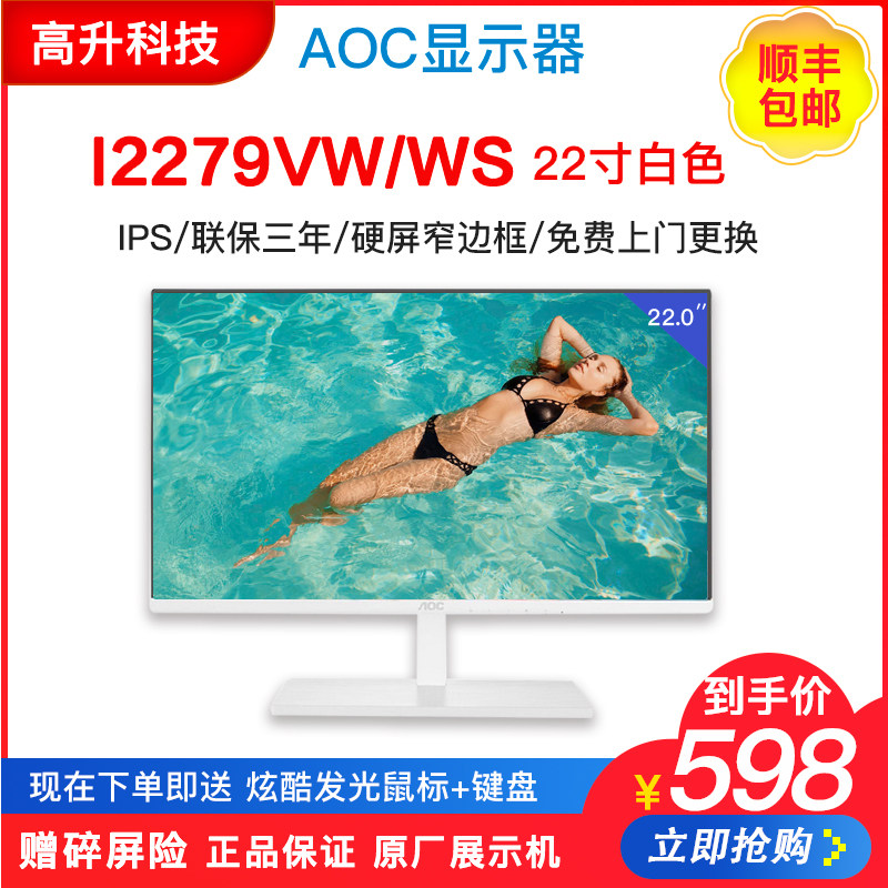 AOC19寸显示器19/20/22/24/台式电脑白色液晶屏幕HDMI壁挂家用监