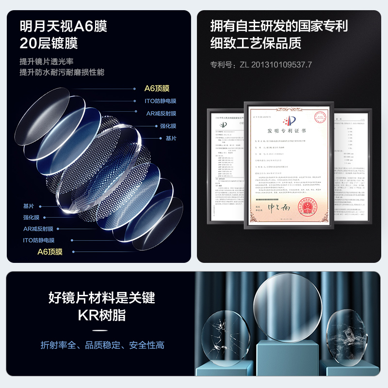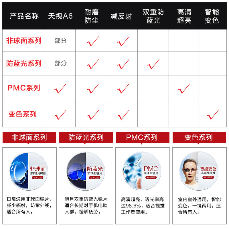 明月镜片非球面PMC防蓝光1.71超薄近视镜片可配眼镜2片现片定制片