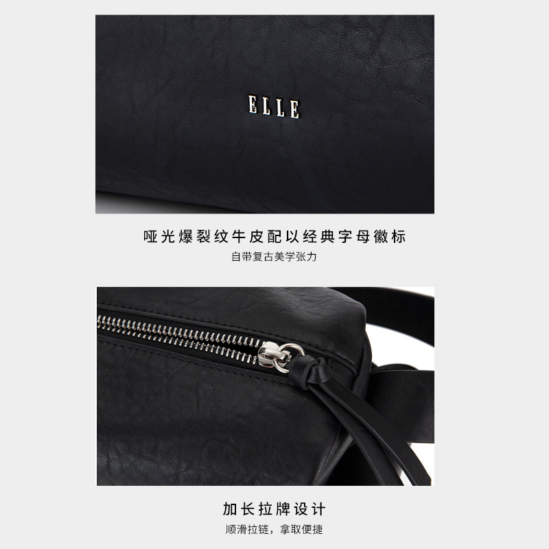 ELLE女包2025新款宽肩口袋斜挎枕头包时尚百搭单肩高级感手提包