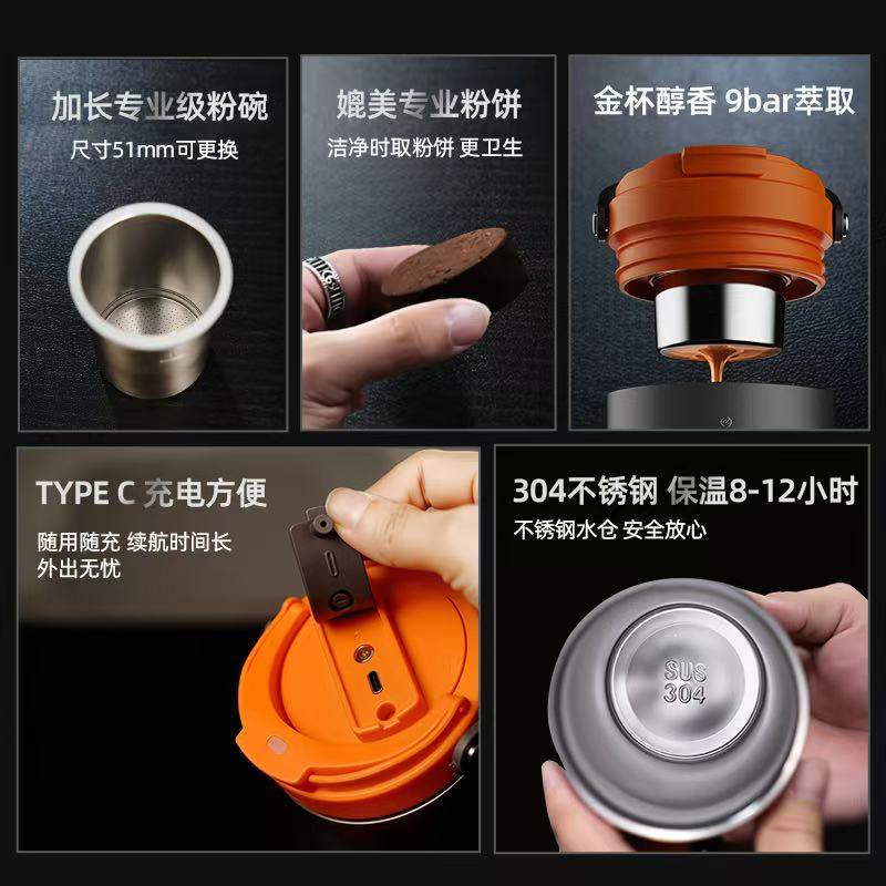 意式便携式咖啡机小型家用电动一体机户外咖啡杯冷热萃取机半自动