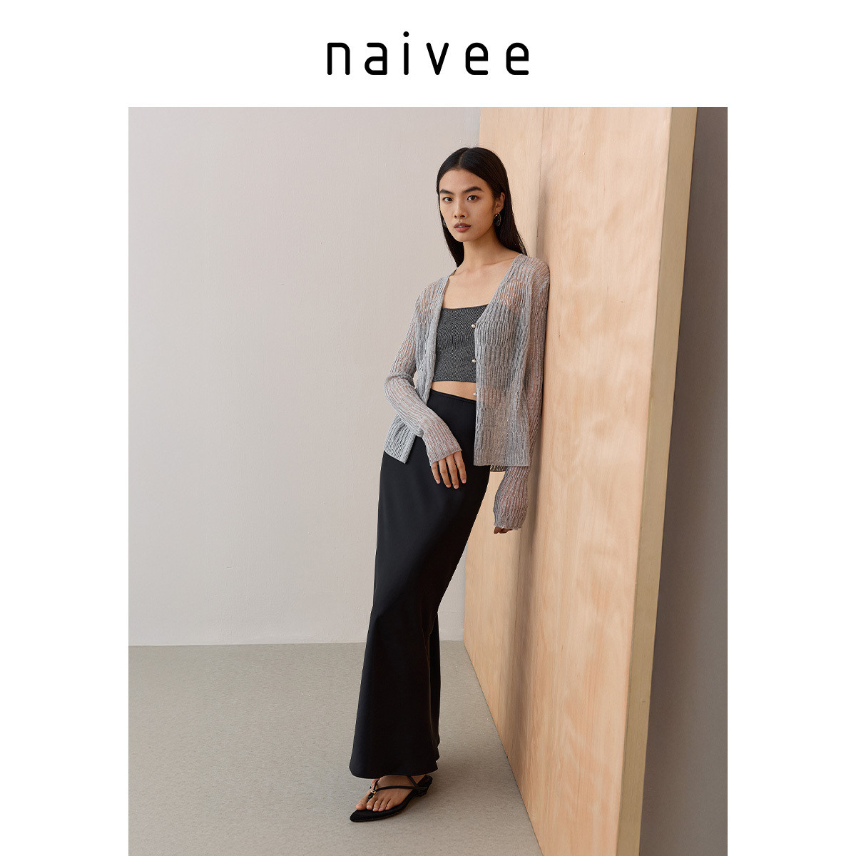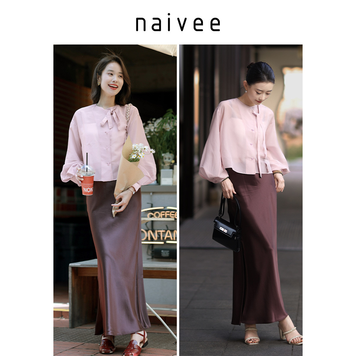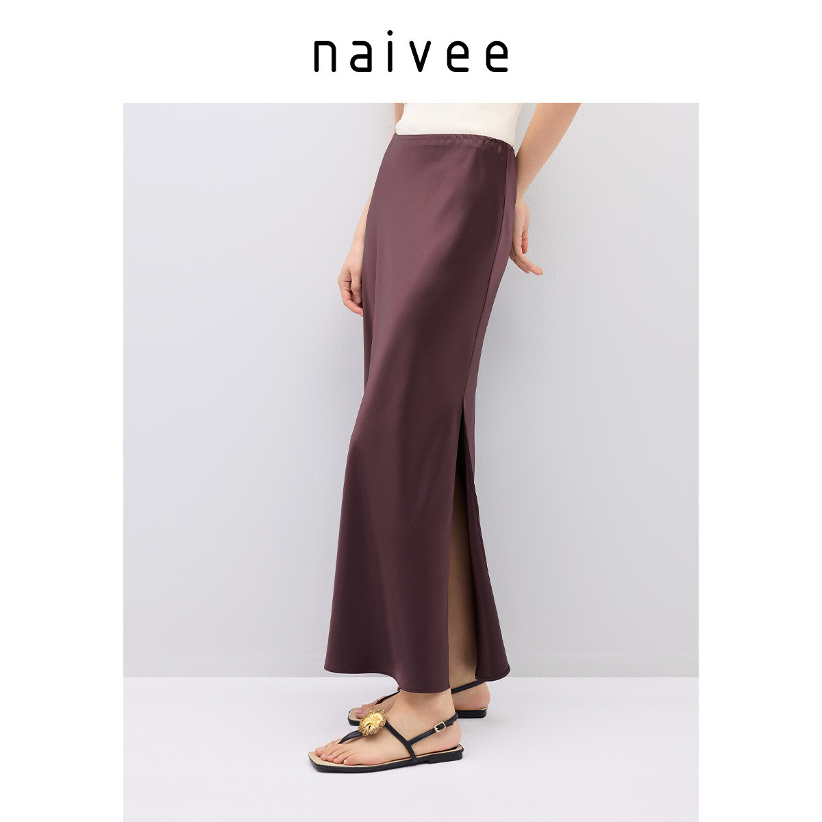 双面织醋酸缎』naivee纳薇流光半身裙鱼尾长裙夏新款光泽垂感