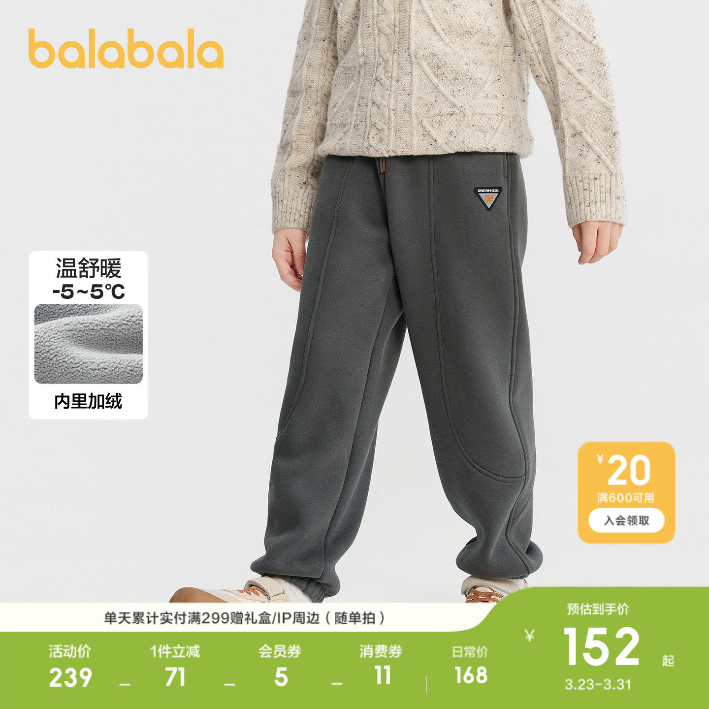 【商场同款】巴拉巴拉童装儿童裤子男童加绒长裤2026冬装休闲卫裤