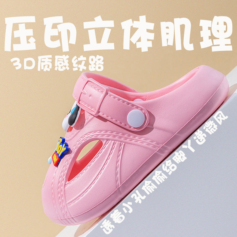 2025防滑轻便儿童洞洞鞋新款外穿夏季男童女童凉拖鞋包头沙滩粉色