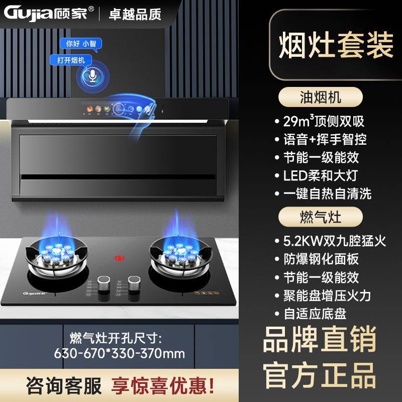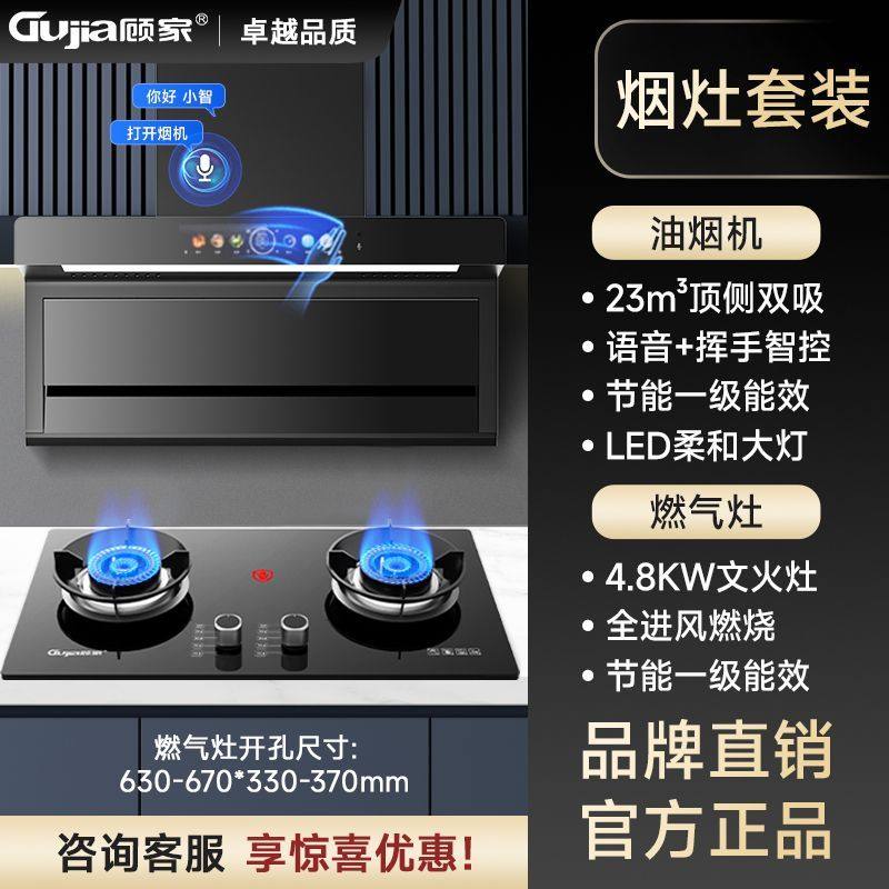 顾家油烟机家用厨房大吸力顶侧双吸油烟机猛火燃气灶具套装两件套