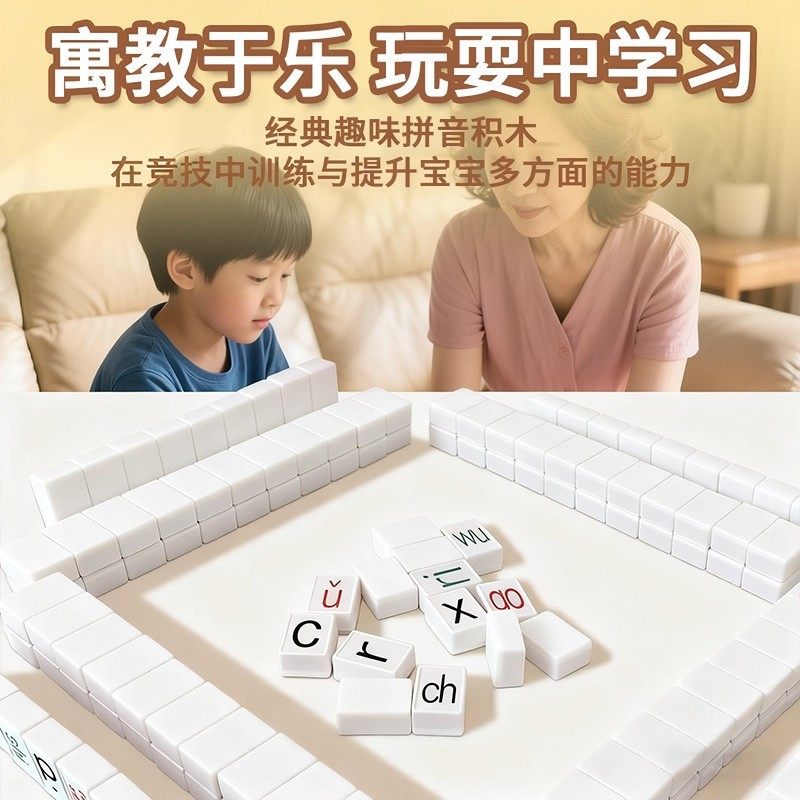 趣味汉语拼音麻将儿童一年级字母认知益智卡牌幼儿园思维开发玩具